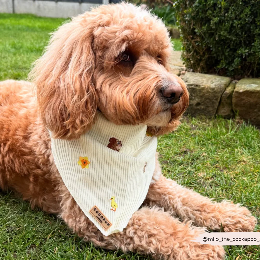 A must-have for your furry friend's walkies! This Embroidered Woodland Walkies Bandana is cute and soft, adding a playful touch to any doggy outfit. Perfect for a pawsome walk in the park.